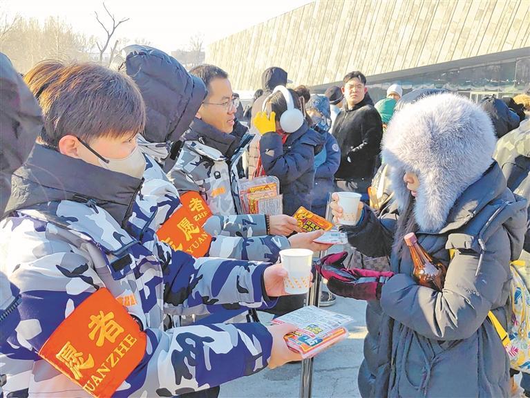 志愿者為游客送溫暖。