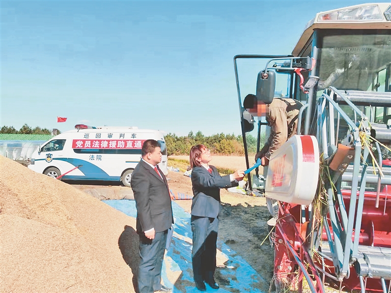 建三江法院法官通過巡回審判車將法律文書送到當事人手中。
