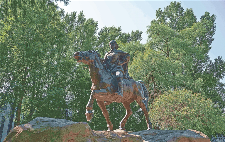 驅(qū)車駛?cè)牒邶埥∩兄臼校谎郾憧匆姯h(huán)島中心屹然挺立的高大銅像:趙尚志將軍身騎戰(zhàn)馬,戎裝飛揚(yáng),他望向遠(yuǎn)方,好似凝視這一方和平安寧。