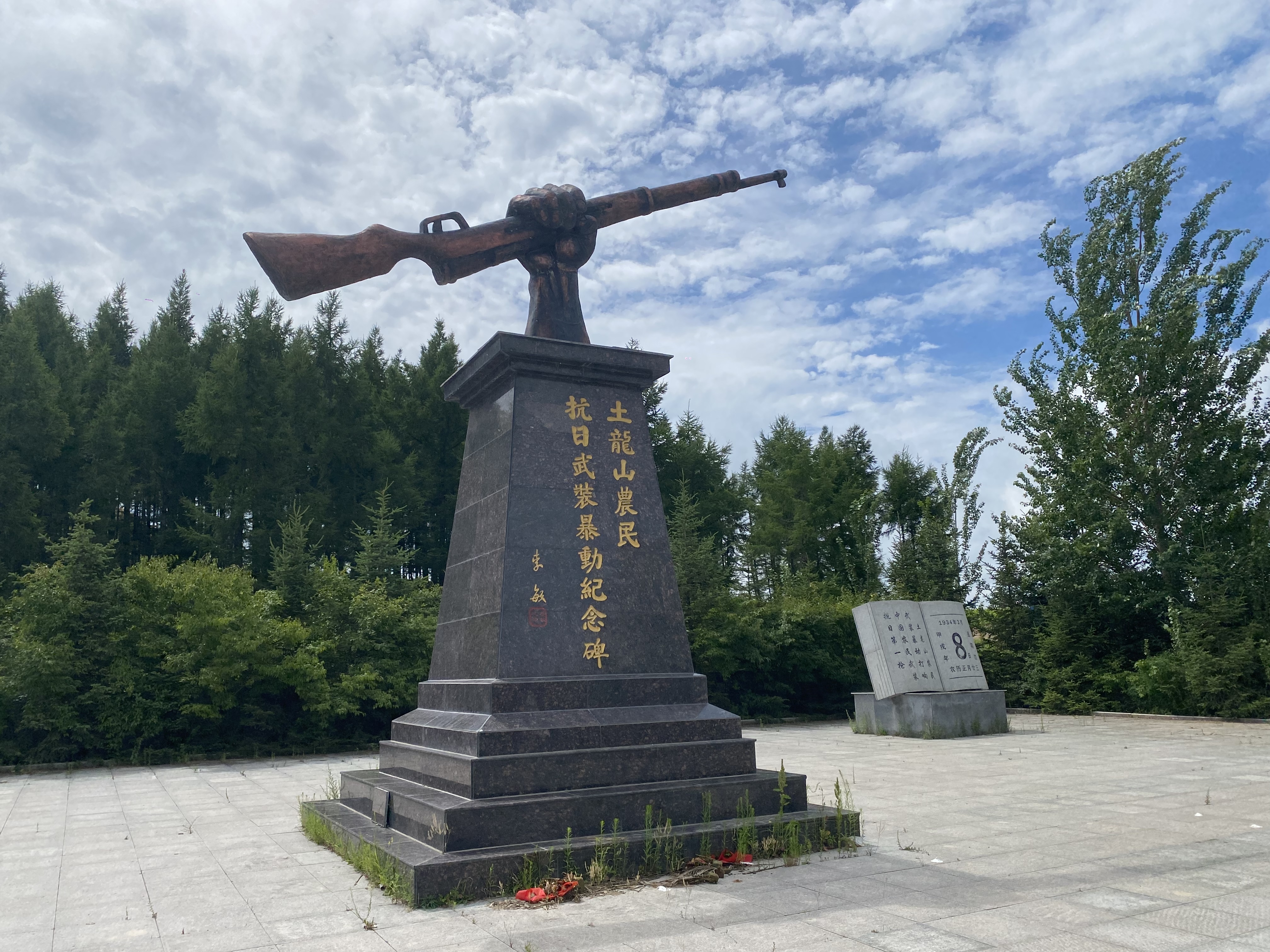在佳木斯市樺南縣土龍山鎮(zhèn)西側(cè)的開闊地帶,一座花崗巖紀念碑直刺蒼穹。碑頂,一只青銅鑄就的“巨手”沖破巖石的束縛,將一支“步槍”奮力擎向天際——這凝固的瞬間,正是1934年那個寒意料峭的初春,土龍山的怒吼。