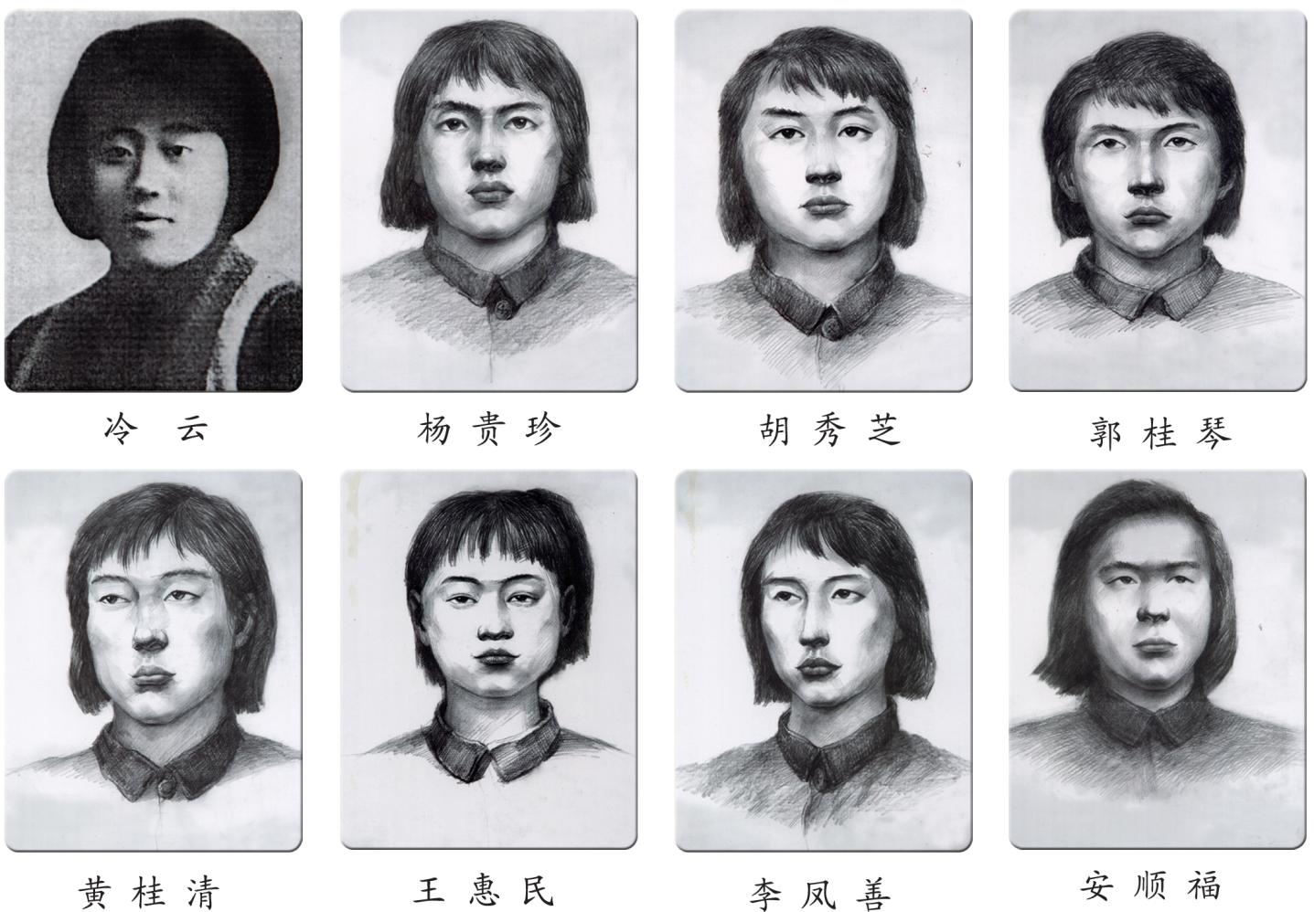 請記住:她們是共產(chǎn)黨員、抗聯(lián)二路軍五軍婦女團(tuán)指導(dǎo)員冷云,共產(chǎn)黨員、五軍婦女團(tuán)班長楊貴珍、胡秀芝,五軍婦女團(tuán)戰(zhàn)士郭桂琴、黃桂清、王惠民、李鳳善(朝鮮族)和二路軍第四軍共產(chǎn)黨員、被服廠廠長安順福(朝鮮族)。